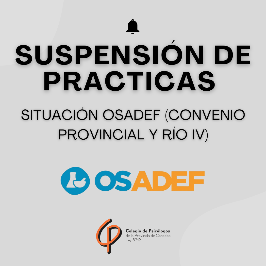 Situación OSADEF (Convenio Provincial y Rio IV) – Suspensión de prácticas