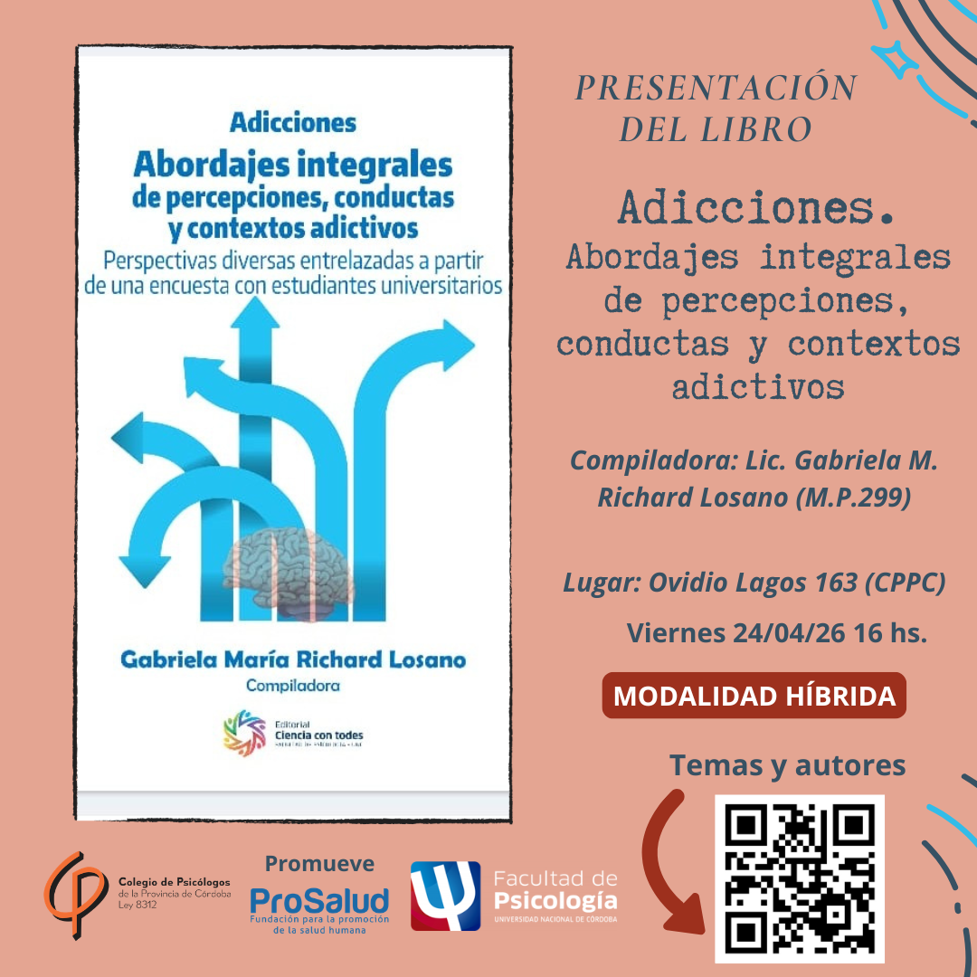 Desde la Secretaría Científica del CPPC invitamos a participar de la presentación del libro: “ADICCIONES. ABORDAJES INTEGRALES DE PERCEPCIONES, CONDUCTAS Y CONTEXTOS ADICTIVOS”. Perspectivas diversas entrelazadas