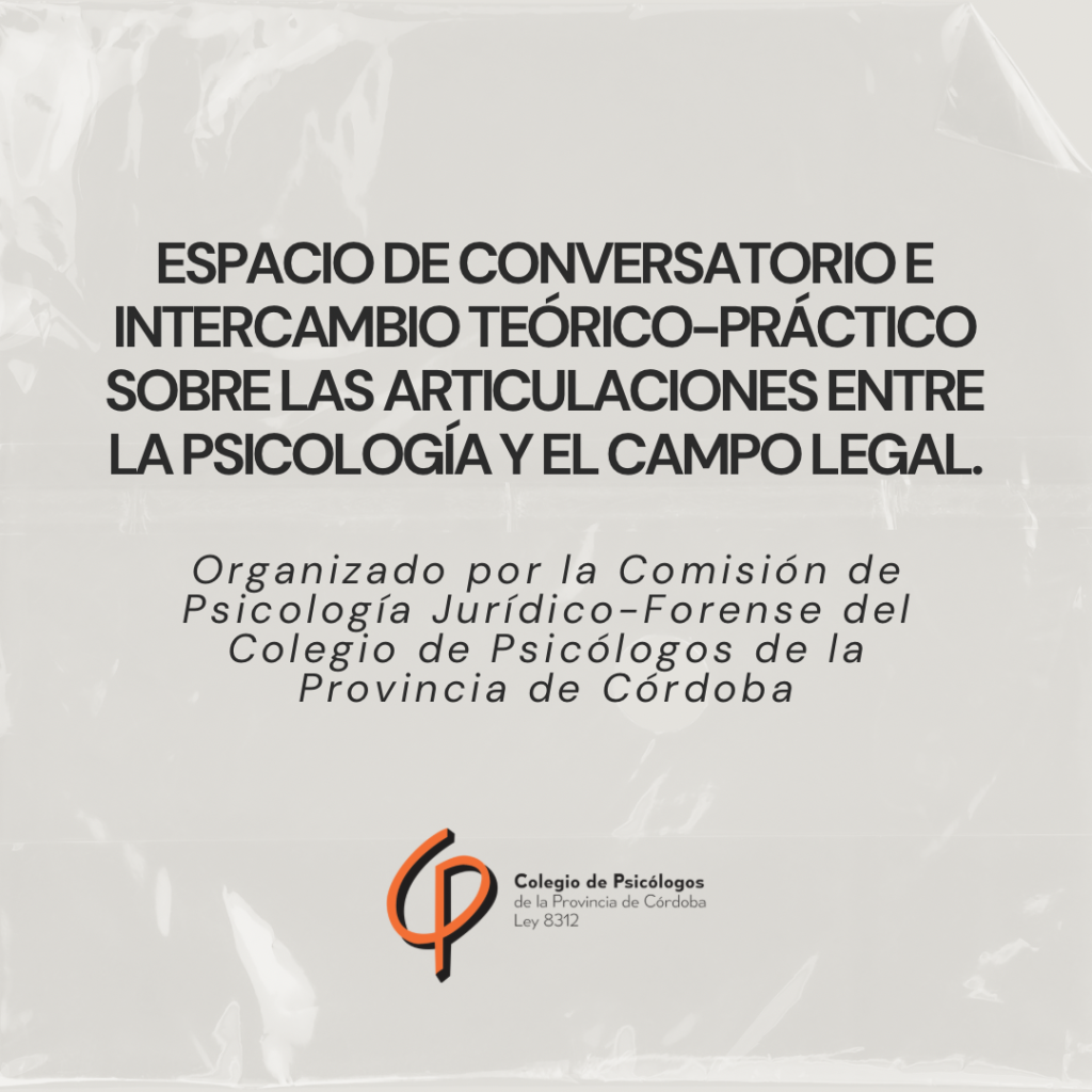 El Colegio de Psicólogos de la Provincia de Córdoba pone a disposición de lxs matriculadxs un espacio de conversatorio e intercambio teórico-práctico mensual destinado a quienes se encuentran en contacto con el área jurídico- forense de la Psicología.