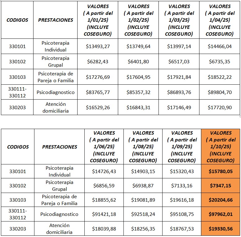 En caso de tener coseguro está incluido en el arancel detallado en la grilla de arriba. Luego la obra social al momento del pago lo descontara de ese monto.