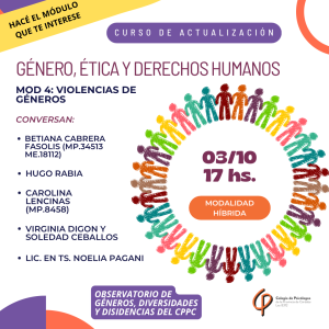 Desde el Observatorio de Géneros, Diversidades y Disidencias del CPPC invitamos al cuarto encuentro “Violencias de géneros” del “Curso de Actualización: Género, Ética y Derechos