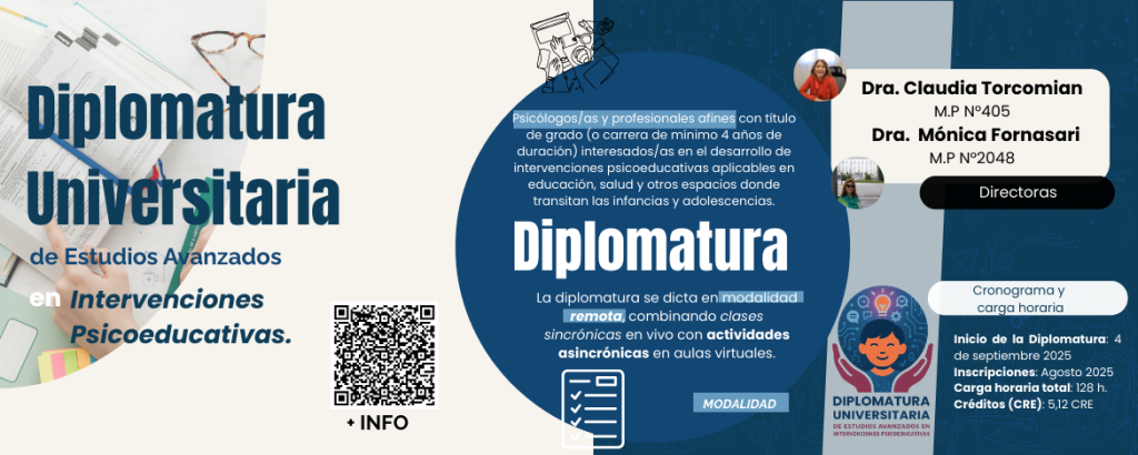 El Colegio de Psicólogos de la Provincia de Córdoba con el objetivo de enriquecer, fomentar y acercar la actualización en la formación a los profesionales matriculadxs, sorteará 2 medias becas para la «Diplomatura Universitaria de Estudios Avanzados en Intervenciones Psicoeducativas», a cargo de las docentes Dra. Claudia Torcomian (M.P.405) y Mgter. Mónica Fornasari (M.P.2048)